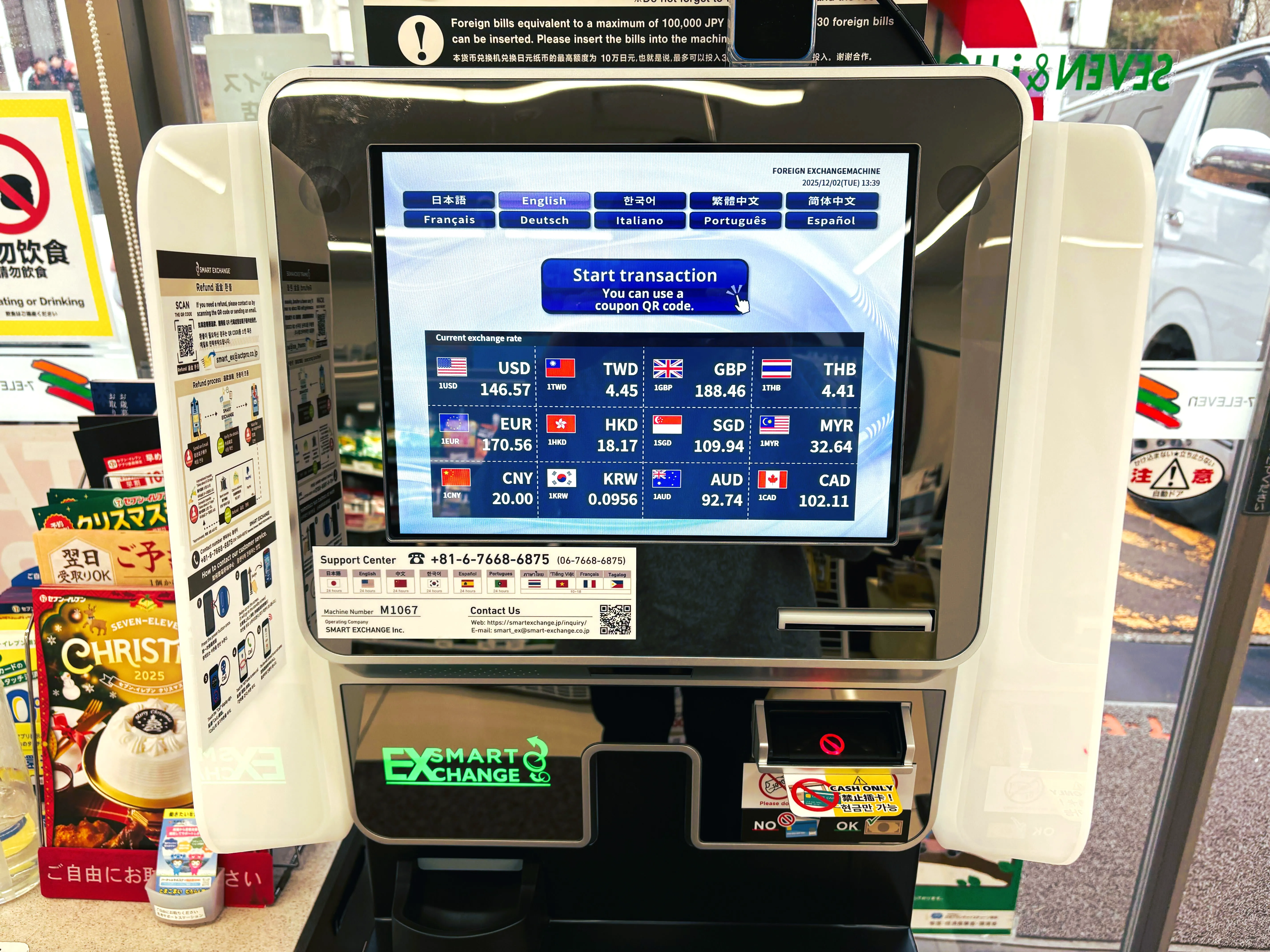 外貨両替機 SMART EXCHANGE セブン-イレブン 登別温泉店